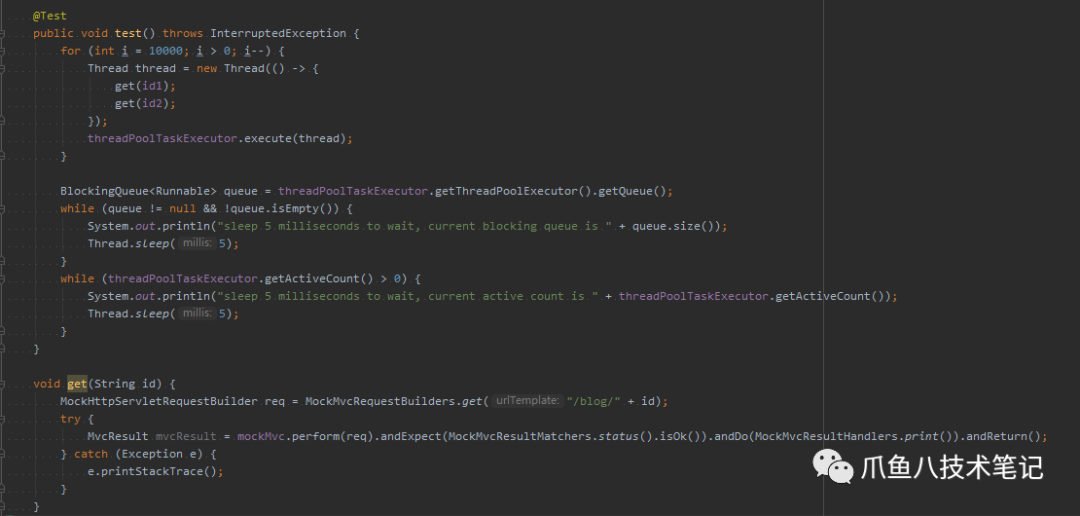 在编写测试用例的时候使用 Spring 提供的 ThreadPoolTaskExecutor查看线程是否都已执行完毕。