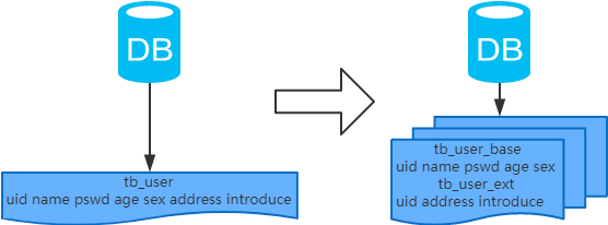1.概念:以字段为依据,按照字段的活跃性,将中字段拆到不同的(主表和扩展表)中。