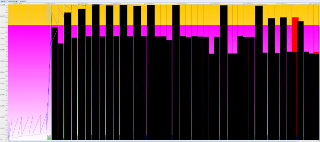 随着JVM债务计数器的增加,我们越来越确信它是不健康的,最终我们就会采取某些措施。 例如,真实世界应用的GC循环债务可能看起来像: