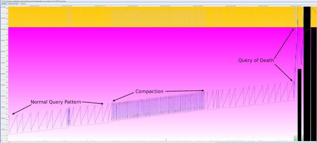 然而即使有jvmkill,我们依然会遇到JVM的问题,这些JVM几乎(但不是完全)都是因为内存不足出问题。Java进程一遍又一遍地执行GC,在GC停顿之间几乎没有做任何有用的工作。由于JVM没有100%占用资源,因此jvmkill不会发现问题。然而客户端却发现其数据存储节点的吞吐量下降了四个数量级。