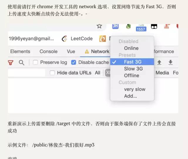 结束后花了一段时间整理了下思路,那么究竟该如何实现一个大文件上传,以及在上传中如何实现断点续传的功能呢?
