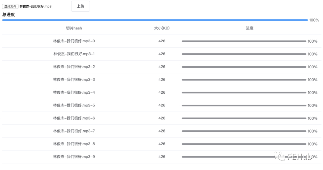 至此一个简单的大文件上传就完成了,接下来我们在此基础上扩展一些额外的功能。