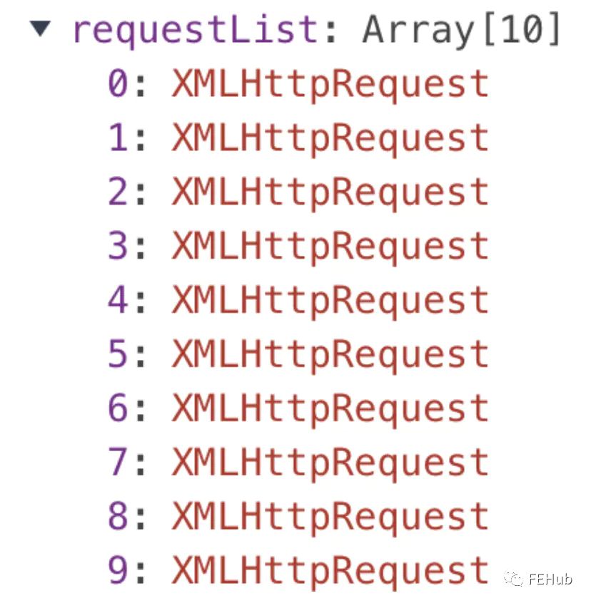这样在上传切片时传入 requestList 数组作为参数,request 方法就会将所有的 xhr 保存在数组中了。