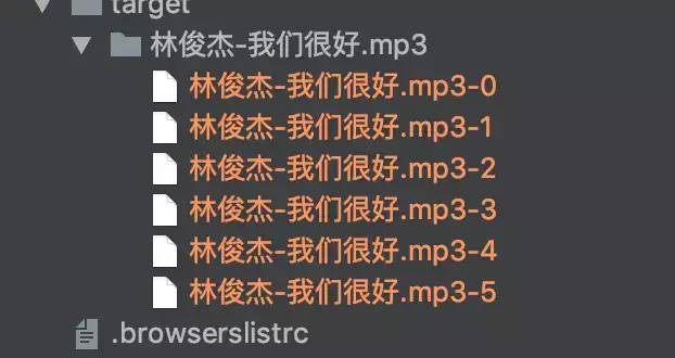 在接受文件切片时,需要先创建存储切片的文件夹,由于前端在发送每个切片时额外携带了唯一值 hash,所以以 hash 作为文件名,将切片从临时路径移动切片文件夹中,最后的结果如下