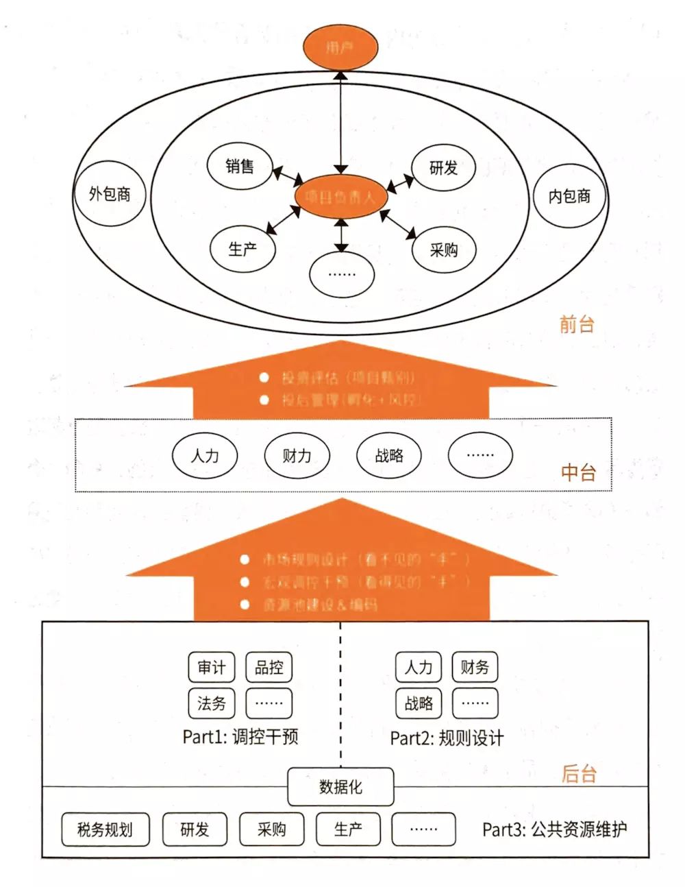 组织中台很像企业中的内部风投和创新孵化机构,为前台组织和团队构建创新型前台应用提供类似于投资评估(项目甄别)、投资管理、投后管理(孵化与风控),真正从组织和制度上支撑前台组织和应用的快速迭代规模化创新。