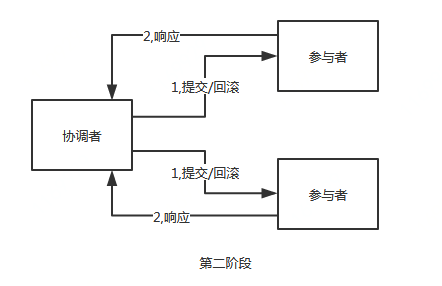 因此,二阶段提交的算法思路可以概括为:参与者将操作成败通知协调者,再由协调者根据所有参与者的反馈情报决定各参与者是否要提交操作还是中止操作。