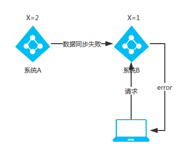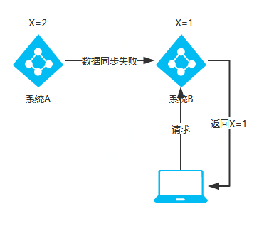 - 当出现网络分区后,系统 A 与系统 B 之间的数据同步数据失败,系统 B 的 X=1。